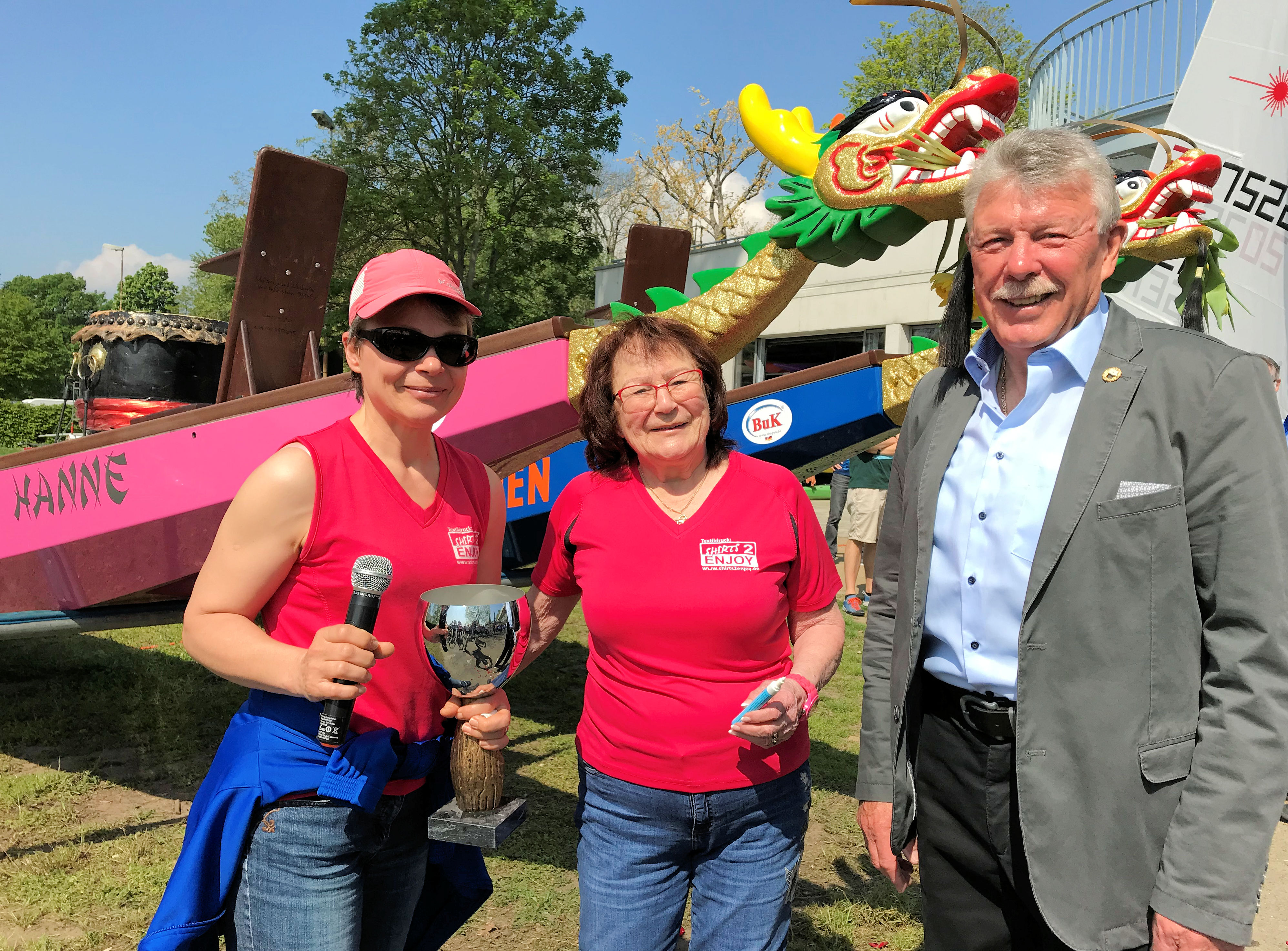 Jugendarbeit liegt uns am HerzenStadtrat Manjura, Taufpate für Drachenboot der Schulsozialarbeit Taufpatinnen in “Pink”: Anke und Hanne mit Lothar Weckerling 4mal Taufe von 1er Rennkajaks Taufpatinnen Shajenne und Vanessa mit Rennkajak-Chefin Brigith Barth Lennard, Noa und Rheinwasser Opti “Jeanie”, getauft von Jana Lisan Quasten “Fynnline” soll die Jolle heißen, Taufpate Fynn Reisig