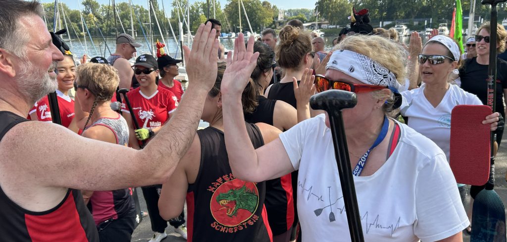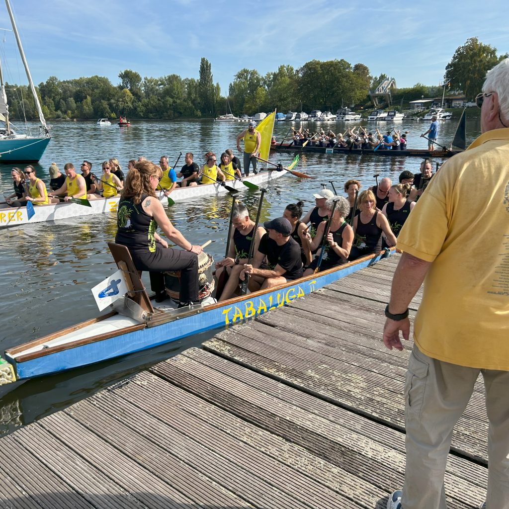 Ein herzliches Dankeschön gilt allen, die im Hintergrund dafür gesorgt haben, dass dieser Regattatag reibungslos ablaufen konnte. Vom Auf- und Abbau der Regattastrecke über die liebevolle Dekoration bis hin zum reibungslos organisierten Marshalling und der Verpflegung, überall war der Einsatz spürbar. Auch der Zieltum, die Beschallung und die Sicherheit lagen in engagierten Händen. Die DLRG und eine Ärztin waren stets präsent und sorgten für ein gutes Gefühl auf und am Wasser. Nicht vergessen dürfen wir die Steuerleute, die für sichere Fahrten sorgten, sowie all jene, die für Ordnung und Sauberkeit auf dem Gelände verantwortlich waren. Ohne dieses vielfältige Engagement wäre die Regatta in dieser Form nicht möglich gewesen. Stefan Frey, Abteilungsleitung Drachenboot im WVS, betonte, dass die Pink Ladies auf ihre Teilnahme verzichtet hätten, um bei der Regattaorganisation und der Durchführung mit voller Kraft zu unterstützen.