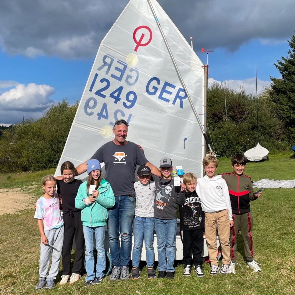 Nach­dem die Optis wieder auf und in die Anhänger ver­laden und alles ver­packt wor­den war, über­re­ichte Prüfer Ralf Hoff­mann den frischge­back­e­nen Seg­lerin­nen und Seglern feier­lich ihre Jugend­segelscheine und grat­ulierte allen zur erfol­gre­ich bestande­nen Prü­fung. Dies war auch die Gele­gen­heit, sich für die gesamte Sai­son und den großar­ti­gen Ein­satz bei Markus Pen­ten­rieder zu bedanken.