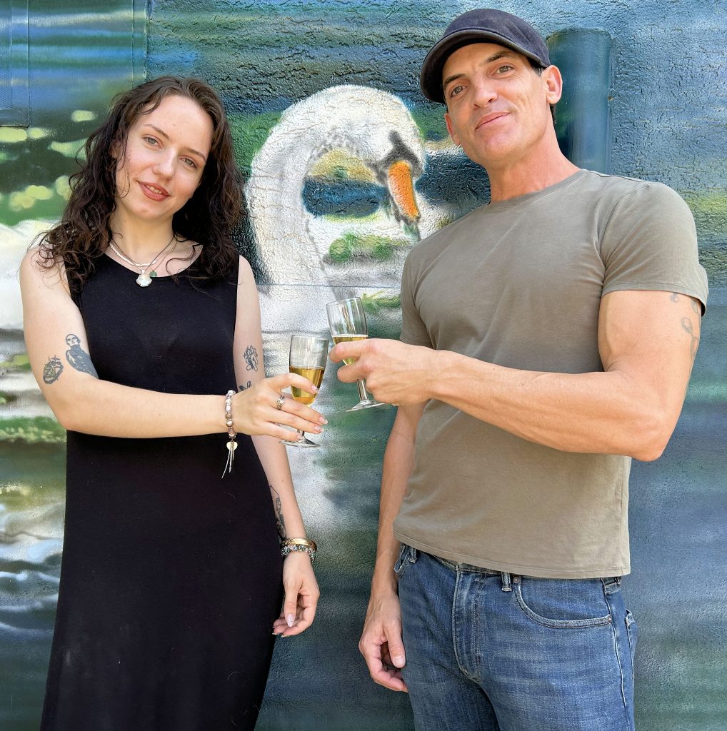 Sean Grif­fin (recht­es Foto, rechts) ist Graf­fi­tikün­stler, Wand­maler und fein­er Kün­stler aus New York. Er fing mit Arbeit­en auf der Straße an, die dann zu groß­for­mati­gen Wand­bild-Aufträ­gen in Ameri­ka und Europa führten. Außer­dem unter­richtet, per­formt und malt er auf öffentlichen und pri­vat­en Events. Seine Werke wur­den schon in großen Gale­rien in New York, Mia­mi und Key West ausgestellt.