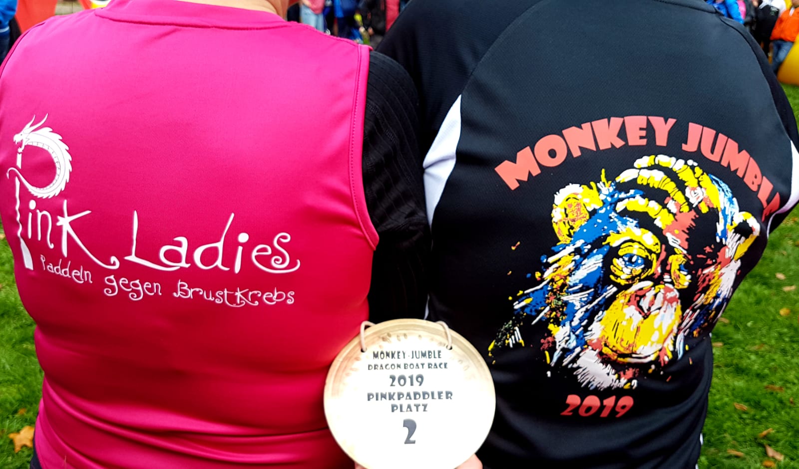 Am Samstag den 12. Oktober 2019 machten wir uns bei strahlendem Sonnenschein auf den Weg zum Monkey Jumble in Saarbrücken. Im Rahmen der größten Langstreckenregatta Europas (11km), starteten 4 Pink Teams auf einer Strecke von 2000 Metern.