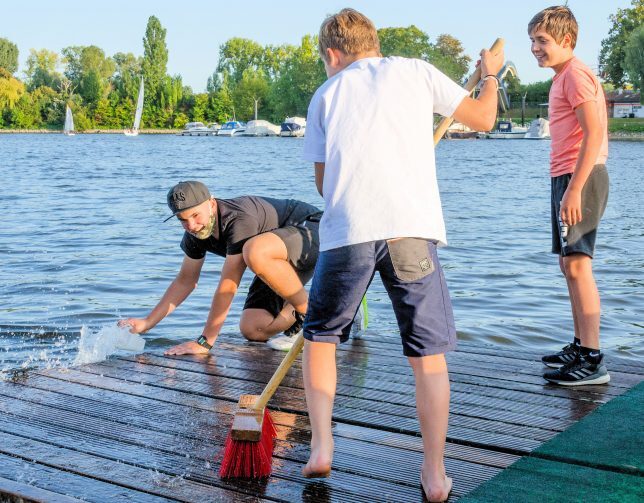Die Leit­er der WVS-Kanu­abteilung hat­ten alle Pad­dler am Fre­itag (18.09.) zusam­mengetrom­melt, um ihre Boot­shallen auf Vor­der­mann zu brin­gen. Egal, ob Anfänger oder Deutsch­er Meis­ter, alle kamen. Und auf dem Wasser­sport-Gelände war der (Putz-)Bär los. Mit kleinen Extra-Ein­la­gen beim Wasserspaß … fotografiert von Ans­gar Kriesel.