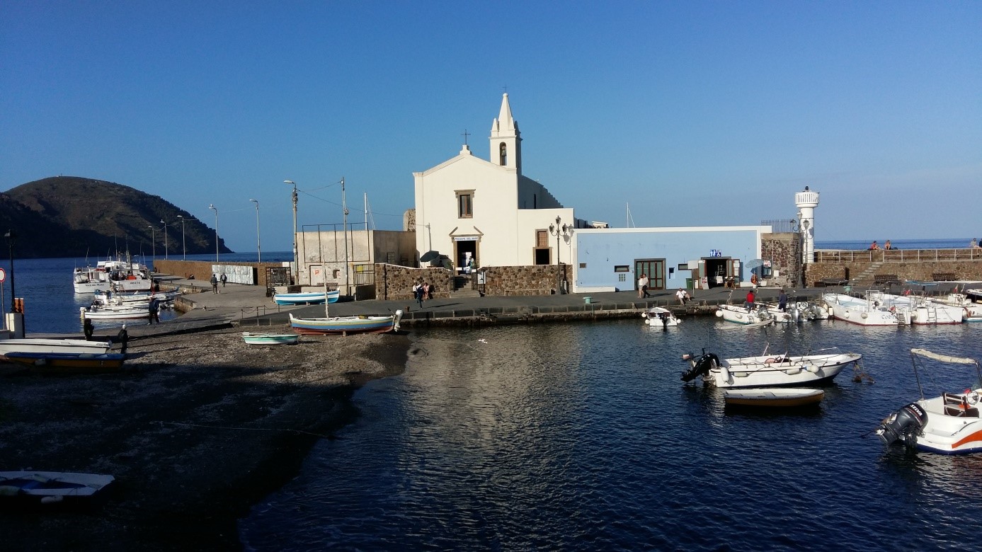Am Don­ner­stag ver­ließen wir Sali­na nach Nor­den, um die gegenüber liegende Insel Lipari anzu­laufen und dort an den Schwimm­ste­gen des Haup­tortes festzu­machen, der in ein­er nach Osten aus­gerichteten Bucht liegt. Auf dem Weg dahin legten wir noch einen Badestopp in ein­er der nördlichen Bucht­en von Lipari ein, und kamen dann zügig am Nach­mit­tag in Lipari selb­st an. Die eigentliche Mari­na liegt im Nor­den der Bucht, aber ca. 3 km abseits des Städtchens. Der alte Stadthafen im Süden war uns zu eng und zu riskant, noch einen Platz zu ergat­tern. Also entsch­ieden wir uns für einen der drei Schwimm­stege der Mari­na Lun­ga ober­halb des Fährhafens, in der Mitte der Bucht, etwa 1 km vom Stadtzen­trum ent­fer­nt. Dort erwies sich der nördlich­ste Schwimm­steg, betrieben von „Por­tos­al­vo“ am bequem­sten und mit dem besten Ser­vice (Moor­ings, Strom und Wass­er, aber keine Duschen und Toi­let­ten). Die Liegege­bühren schwank­ten zwis­chen 50 und 80 € pro Nacht, in der Hoch­sai­son im August allerd­ings kann es leicht das Dreifache kosten. Beson­ders teuer ist dann die Insel Panarea, wo man preis­lich gegen die reich­lich vertretene Klasse der 50-Meter-Plus-Hochseey­acht­en mit Hub­schrauber­lan­de­platz an Deck konkur­ri­eren müsste, aber i.d.R. nicht kann. Die Stadt Lipari selb­st ist unbe­d­ingt einen Besuch wert, u.a. wegen der Kathe­drale, den römis­chen und griechis­chen Aus­grabun­gen auf dem Burg­berg, dem Rathaus darauf und  dem archäol­o­gis­chen Muse­um sowie schließlich dem hüb­schen alten Stadthafen mit sein­er malerischen Prom­e­nade und Kapelle.